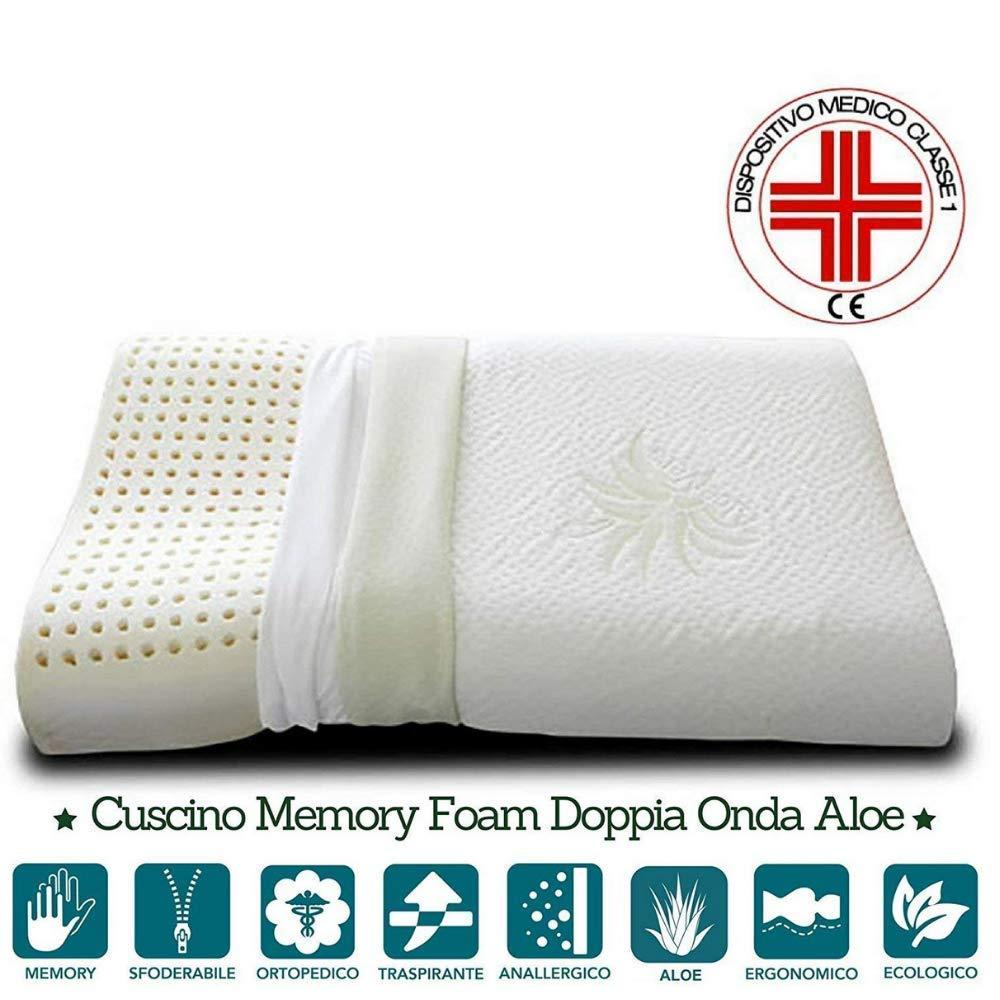2- Cuscini Letto 40x70 in ALOE VERA 100 Memory Foam Dispositivo Medico