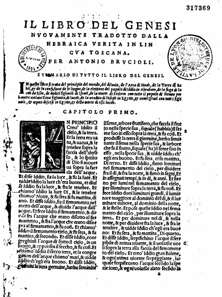 13* La Bibbia tradotta in lingua toscana da Antonio Brucioli, 1539